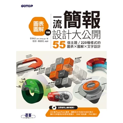 適用PowerPoint 2013 / 2010 培養簡報真正的設計實力 厭倦了一成不變的PowerPoint設計樣版嗎? 好的簡報內容需要適當的圖表圖解增加提案說服力, 本書充滿質感的圖表圖解,讓你提案無往...more